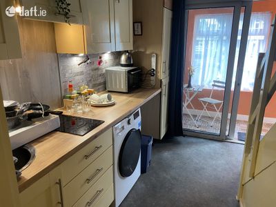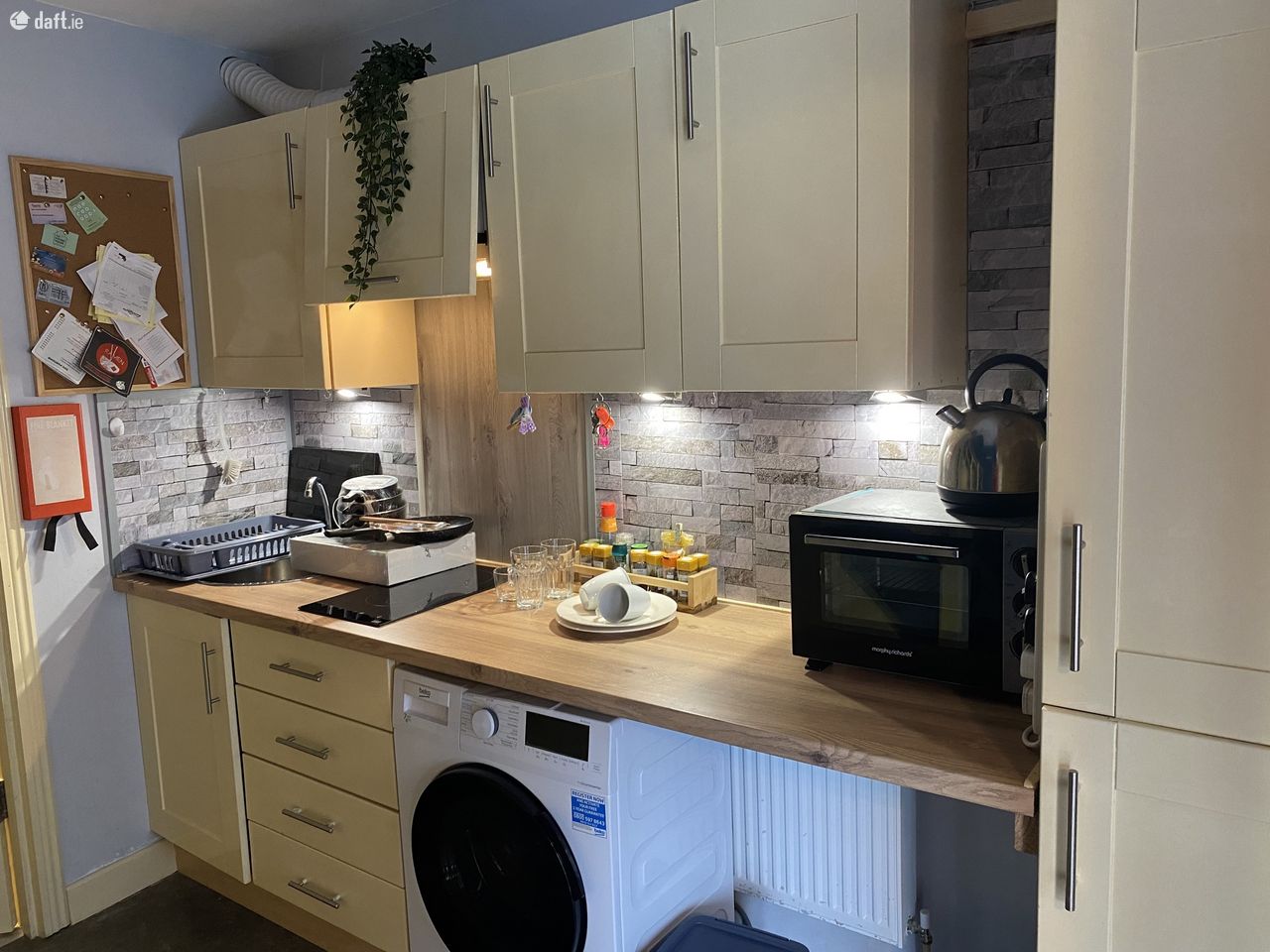Own entrance door, into the kitchen which features, hob, oven/grill, washer dryer, fridge freezer and plenty of storage. Off the kitchen is the bathroom with wc, whb & shower cubicle with power shower.